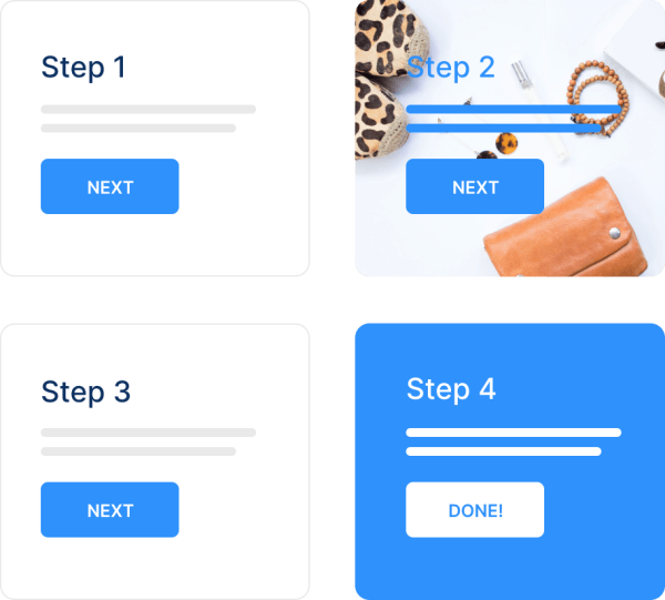 Easily build multi-step forms in all forms and sizes. Chunk your form fields into easy to consume steps and experience higher conversion rates.